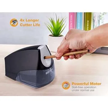 Show more The HHC Cutter is not just any ordinary electric pencil sharpener; it’s a revolution in sharpening technology! Designed with a hardened helical blade, it promises up to four times longer cutting life compared to typical sharpeners, making it a smart investment for anyone who values quality.