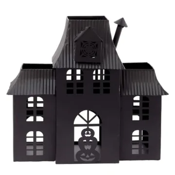 Boston International Halloween Village Black Metal Houses Tabletop Decorations for Home, 10.25" x 9.5", Haunted Mansion