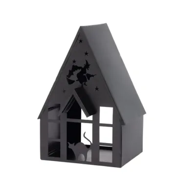 Show moreWelcome to the enchanting world of Halloween with the Boston International Halloween Village Black Metal Houses Tabletop Decorations. This exquisite haunted cottage measures 5.5 x 5.25 inches x 8.25 inches tall, making it the perfect size to add a touch of spookiness to your home without overwhelming your space. Crafted from durable black metal, this charming piece showcases intricate details such as a black cat peering from the window and a playful cutout of a witch flying on her broomstick. It's designed for those who appreciate a blend of whimsy and eerie elegance in their seasonal decor.