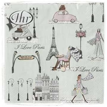 Boston International IHR 3-Ply Paper Napkins, 20-Count Cocktail Size, J'aime Paris