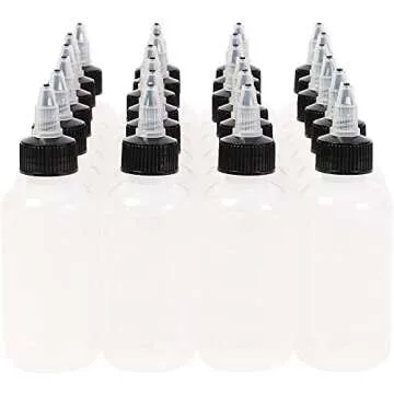 PRODUCT: White-colored soft Boston round squeeze bottles|DIMENSIONS: Bottle diameter 1.8 in. 5.3 in. height; 4 oz squeeze bottles|PERFECT: Bottles with twist caps are ideal for the icing on the cakes for bbq sauces keeping glue for craftwork|MATERIAL: Made of quality PE material these bottles are durable but not heat proof|WHAT’S INSIDE: Each pack contains 24 white-colored squeeze bottles| ASIN: B07X1W5QT9