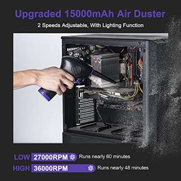 Bosttor Compressed Air Duster for Computer Keyboard, 15000mAh Rechargeable Battery with USB-C Fast Charging, Powerful 36000 RPM Air Blower, Cordless Electric Canned Air Duster Replaces Air Cans