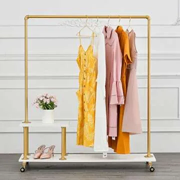 BOSURU Gold Pipe Clothing Rack Garment Rack with Shelves Retail Clothes Display Racks for Boutiques Gold Clothes Rack 51" H