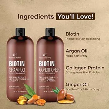 Botanic Hearth Biotin Shampoo and Conditioner Set - with Ginger Oil & Keratin for Hair Loss and Thinning Hair for Men and Women - Sulfate Free, 16 fl oz each