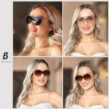 BOTPOV Trendy Aviator Sunglasses Men Women Retro Metal Frame Shades Lentes De Sol Para Mujer BP3612 (Golden Frame/Gradient Pink Lens)