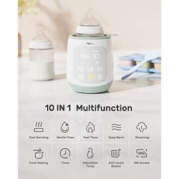 HEYVALUE 10-in-1 Fast Baby Bottle Warmer for All Bottles (Green)