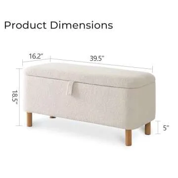 Boucle Storage Ottoman Bench for Bedroom end of Bed, Sherpa Upholstered Shoe Seat Storage Beach for Entryway Bed Foot, Rectangle Cushion Padded Blanket Chest Cute for Living Room, Off White