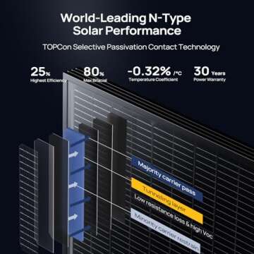 Show moreIntroducing the **BougeRV 24V N-Type 16BB 200W Bifacial Solar Panel**, a high-performance solar solution designed to maximize energy output and efficiency for your camping adventures, marine activities, and off-grid living. Featuring advanced N-TYPE solar cells, this panel achieves a remarkable conversion efficiency of **25%**, far surpassing traditional P-TYPE solar panels. The incorporation of the **Industrial Tunnel Oxide Passivated Contact** technology allows for superior light absorption, enabling the solar cells to produce more energy with minimal resistance loss, even under varied lighting conditions.