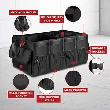 Crafted with reinforced base plates and sturdy side walls, this organizer is built to last. It features resistant carrying handles that make it easy to remove and transport as needed. Whether you're headed to the grocery store or an outdoor adventure, this trunk organizer provides the expandable storage space you need. Enjoy the ease of keeping your belongings neatly tucked away while still having them accessible whenever you need them.