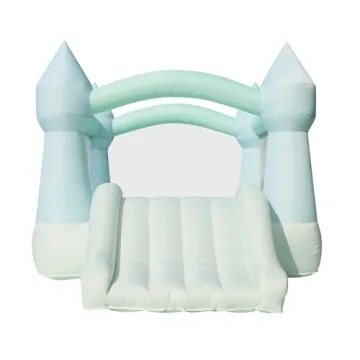 Show more Introducing the Bounceland Bouncy Castle Daydreamer Mist Bounce House, a stunning pastel bouncer designed to elevate your little one's playtime experience, indoors or outdoors! Measuring a generous 12 ft L x 9 ft W x 7 ft H when inflated, this whimsical bounce house invites fun-filled adventures and joyous gatherings. Made from high-quality, heavy-duty puncture-proof material with reinforced stitching, it ensures durability for countless cheerful hours of bouncing. With its trendy design and vibrant colors, the Daydreamer Mist Bounce House is more than just a play structure; it’s also a delightful addition to any backyard or playroom setting.