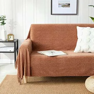 BOURINA Chenille Fluffy Throw Blanket with Decorative Fringe for Couch Cover Sofa Chair Blanket(50×60 Inches) Orange