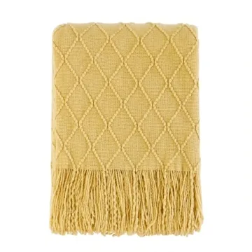 BOURINA Mustard Throw Blanket 50x60 Soft Decorative Knit Couch Throw for Comfort and Style