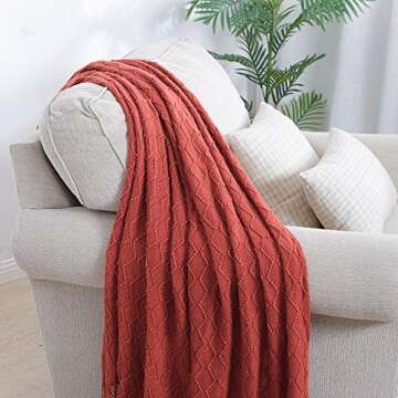 BOURINA Rust Throw Blanket 50x60 inches Decorative Knitted Cozy Sofa Throw