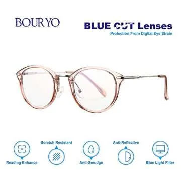 BOURYO Classic Round Blue Light Blocking Glasses Women Computer Eyeglasses (Light Brown)