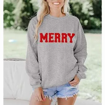 Show more Introducing the Merry Christmas Chenille Patch Sweatshirt, a delightful blend of comfort and festive flair that is sure to turn heads this holiday season! Crafted from a soft cotton blend, this women's sweatshirt is designed for both style and warmth, making it perfect for holiday gatherings. The adorable chenille lettering adds a touch of whimsy, while the glitter patch design elevates it to a 'must-have' fashion statement. Its lightweight and breathable fabric ensures you can wear it comfortably through wintery days without sacrificing style!