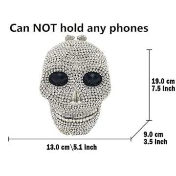 Show moreDiscover the allure of the Boutique De FGG Gold Skull Crystal Clutch Purse, an extraordinary accessory designed for those who embrace individuality and flair. This mini clutch, measuring L 5.1 x W 3.5 x H 7.5 inches, proves that you don't have to compromise on style for practicality. Weighing in at an impressive 2.0 LB, it is crafted from a premium fine-work metal frame glimmering with carefully hand-applied crystals. What sets this bag apart is its stunning skull head motif, which not only defines its edgy aesthetic but also makes it an eye-catching piece at any event, from lively parties to sophisticated gatherings.