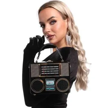 Boutique De FGG Novelty Acrylic Shoulder Bag for Women, Designer Box Clutch Tote Purse & Crossbody Handbag Evening Bag,Small,Black Boombox Radio