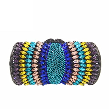 Show more Introducing the Boutique De FGG Women Multi-Blue Crystal Clutch Purse Evening Bags, the perfect blend of elegance and modern flair. This stunning mini clutch is adorned with sparkling rhinestones and edgy spikes, making it an eye-catching accessory for any stylish woman. Measuring at a compact size of 7.5 x 4.3 x 2.8 inches (approx. 19 x 11 x 7 CM), it is designed to hold essential items such as your mini phone, lipstick, and keys without compromising on style. Crafted from high-quality materials with a solid metal frame, this clutch is engineered for durability while radiating glamour, ensuring it remains a lasting addition to your collection.
