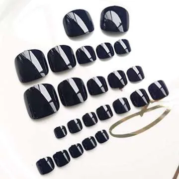Bouttarro 24PCS Solid Color Square Glossy False Toe Nails,Cute Fashion Press on Toe Nails Short Acrylic Full Cover Artificial False Toes Nails for Women & Girls(Black)