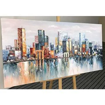 Show more Transform your living space with this stunning Abstract Impressionistic Oil Painting. Measuring a generous 24 x 48 inches (60 x 120 CM), this masterfully crafted artwork showcases the creativity and skill of our talented artists. Each piece is completely hand-painted using paintbrushes and knives, ensuring that no two paintings are exactly alike. The architectural style and vibrant colors will surely captivate any viewer, adding a touch of elegance and modernity to your home or office.