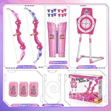 Bow and Arrow Toys for 5 6 7 8 9 10 Years Olds Girls, Archery Set Includes 2 Super Bow with LED Lights, 20 Suction Cups Arrows,Archery Set with Standing Target,3 Target Cans,Gift for Kids