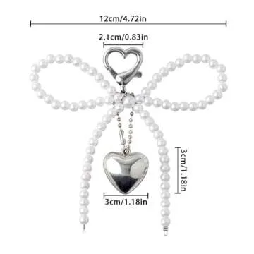 Bow Keychain Accessories Silver Heart Pendant Pearl Bow Key Chain Phone Charm Sweet Bow Cute Keychains for Women Bag Charms Key Rings for Car Keys Bow Charms Key Chains Bowknot Key Ring Girl Key Rings