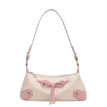 Elegant Pink Bow Tie PU Leather Shoulder Purse for Women - Coquette Aesthetic Balletcore Handbag