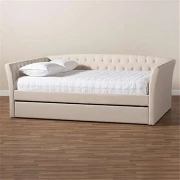 BOWERY HILL Modern Fabric Upholstered Full Size Daybed with Trundle in Beige