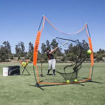 The setup process is a breeze, taking less than 60 seconds thanks to the one-piece base frame and minimal components that eliminate the hassle of losing parts. The connector is made from a tough glass-filled synthetic polymer, innovatively combining hinge and pole sockets for quick assembly. With an oversized design, measuring 7' x 7', it catches even the most errant hits, making it perfect for both pitching and batting exercises.