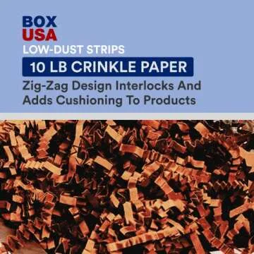Show moreThe BOX USA 10 lb. Kraft Crinkle Paper Packing is your ultimate solution for all your gift-wrapping and packaging needs. Designed with durability in mind, this crinkle cut paper is not only reusable but also water-resistant, ensuring that your gifts remain safe and stylish even in unexpected conditions. Made right here in the USA, it stands up to tough handling and shipping, providing peace of mind that your delicate items are cushioned securely during transit. With its unique zig-zag strips, it adds an elegant touch to any package, making your gifts look professionally wrapped every time.