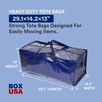 BOX USA Heavy Duty Moving Bags 29.1" x 14.2" x 13", Pack of 6 - Extra Large | Blue Plastic Moving Totes suitable for Packing Clothes, College Dorms, or used as a Water-Resistant Storage Tote