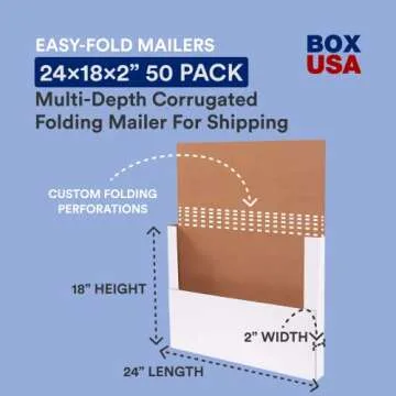 BOX USA Moving Boxes Medium 24"L x 18"W x 2"H, 50-Pack | Corrugated Cardboard Box for Packing, Moving and Storage 24182