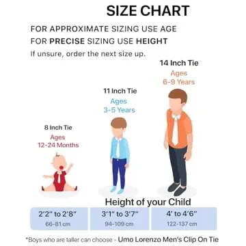 The tie comes in sizes suitable for ages 0-10 years, with specific recommendations for each age group.