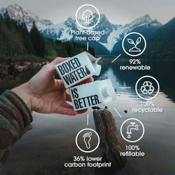 Boxed Water 8.5 oz. – Purified Drinking Water in 92% Plant-Based Boxes, 100% Recyclable, BPA-Free, Refillable Cartons, Sustainable Alternative to Plastic Bottled Water, Mini Water for Kids