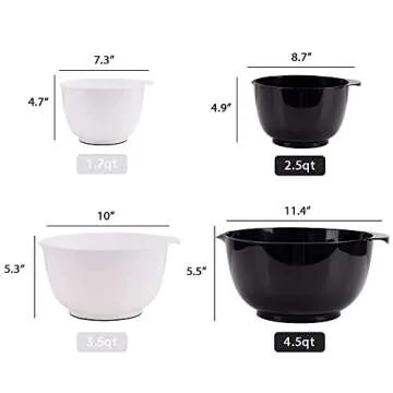BoxedHome Black and White Nesting Plastic Mixing Bowl Set With Pour Spout, Microwave and Dishwasher Safe, BPA free Non-Slip Base, Set of 4 Size 1.7, 2.5, 3.5 and 4.5qt, Great for Prepping, Baking
