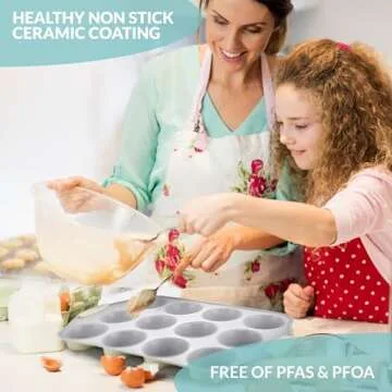 Boxiki Kitchen 12 Cups Ceramic Coated Muffin Pan for Baking - Durable Steel Frame Cupcake Pan w/Nonstick Surface - Professional Muffin Tray with Silicone Handles