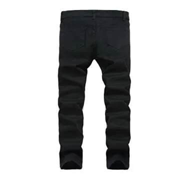 Boy's Black Slim Fit Skinny Jeans Ripped Elastic Waist Pants with Zipper for Kids ,Black,5 Slim