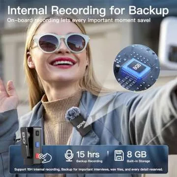 Show more Experience audio like never before with the BOYAMIC Wireless Lavalier Microphone, designed for the modern content creator. This innovative microphone features a remarkable 15 hours of onboard recording, allowing you to store audio in real time without the need for external devices. With an impressive 300 meters (984ft.) range, it utilizes cutting-edge fourth-generation 2.4GHz technology to ensure a stable connection, even in outdoor environments, making it perfect for camping, hiking, and other adventurous activities.