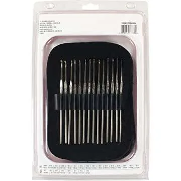 Show moreDiscover the ultimate crochet experience with the Boye Ergonomic Steel and Aluminum Crochet Hook Set. Designed with both beginners and seasoned crafters in mind, this comprehensive kit includes 25 pieces of premium-quality crochet hooks, featuring 16 steel hooks in sizes ranging from 00 (3.5mm) to 14 (0.75mm) and 8 aluminum hooks from D (3.25mm) to K (6.5mm). Each hook is meticulously crafted with smooth, rounded heads that effortlessly glide through yarn, preventing frays and splits, making it perfect for various yarn types, including cotton and wool.