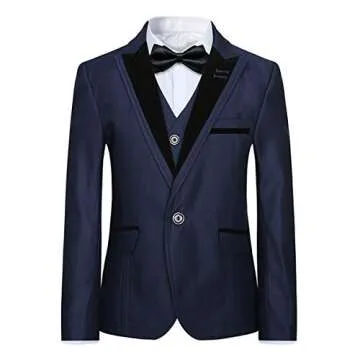 Show moreIntroducing the Boyland Boys 3 Pieces Tuxedo Suit, an exquisite ensemble tailored for young gentlemen who deserve to look their best. Crafted from premium quality polyester, this tuxedo set combines sophistication with comfort, allowing your child to feel as fabulous as they look. Designed for a variety of special occasions, including weddings and birthdays, this tuxedo is available in a spectrum of six stunning colors: elegant blue, delicate navy, classic black, energetic honey yellow, unique pink, and gorgeous gray. The tuxedo delights with a formal black peak lapel, a chic single-breasted one-button closure, and detailed cuff buttons that lend it a classic feel, complemented by a center vent on the back for effortless style. The slim fit cut enhances the modern appeal, ensuring your little gentleman stands out from the crowd.