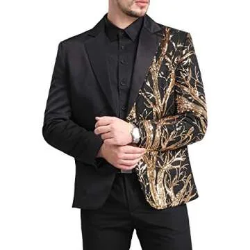 Boyland Men's Tux Dress Blazer Gold Sequins Floral Suit Party Dinner Prom Slim Fit Stylish Blazer Sport Coat