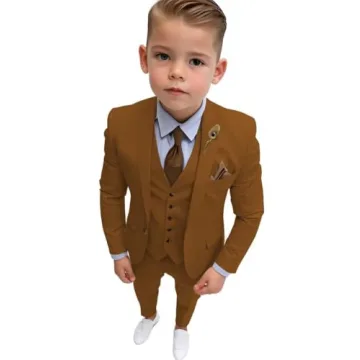 Show moreIntroducing our **Boys Suit Slim Fit Toddler Suit**, a stunning single-breasted tuxedo set that is perfect for various formal occasions. This sleek brown suit is made from a high-quality blend of **65% Polyester, 25% Rayon, and 10% Wool**, ensuring softness and durability while providing a comfortable fit for your little gentleman. Designed with meticulous attention to detail, this stylish suit features a classic shawl lapel, usable chest pocket, and a center vent at the back, making it not only fashionable but also functional. Your child will feel confident and dapper in this beautifully crafted tuxedo, designed specifically for formal events like weddings, parties, and graduations.