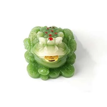 Show moreIntroducing the BOYULL Feng Shui Green Color Money Frog, a stunning decorative piece that embodies prosperity, fortune, and good luck. Measuring just 3.2"(L) x 2.7"(W) x 2.9"(H), this exquisitely crafted statue showcases a charming fat jade money frog seated atop a shimmering gold ingot, with a classic string of copper coins beautifully engraved on its back. Made from high-quality resin that mimics the appearance of jade, this three-legged toad not only captivates with its vivid design but also serves as a powerful talisman for attracting wealth and abundance into your life. Whether placed on your car dashboard or on your desk at work, this enchanting statue is exactly what you need to elevate your space and promote an atmosphere of success.