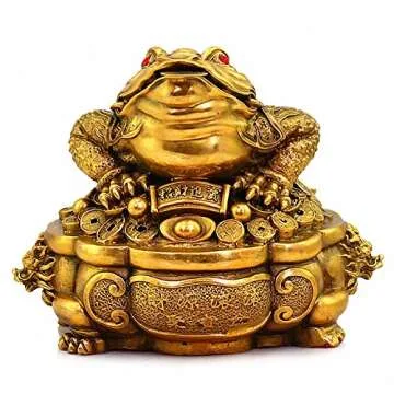 Introducing the BOYULL Large Size Brass Thriving Business Feng Shui Money Frog – a powerful ornament designed to attract wealth, success, and good fortune into your life. This exquisite three-legged wealth frog or toad is a revered symbol in Feng Shui philosophy, known for its ability to dig up prosperity and enhance financial well-being. Crafted from high-quality brass, this stunning statue features the frog sitting majestically upon a treasure basin, adorned with a string of copper coins...