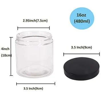 Introducing the BPFY 6 Pack 16 oz Glass Jars with Plastic Lids - the ideal storage solution for any kitchen. Crafted from high-quality glass, these canisters are designed with a chic aesthetic that seamlessly blends functionality with style. The sleek black lids provide an elegant touch, making them not just practical but also a beautiful addition to your kitchen decor. Each jar has a generous capacity of 16 oz, and the dimensions of 3.5 inches in diameter and 4 inches in height make them perfect for various...