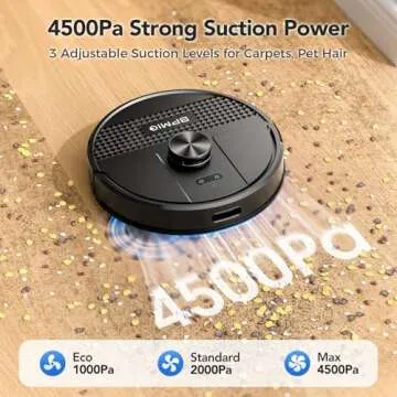 Show more Introducing the BPMIO Robot Vacuum and Mop Combo, the ultimate home cleaning companion designed to simplify your life. Equipped with a powerful 4500Pa Strong Suction Power, this advanced robot effortlessly tackles dust, dirt, and pet hair, ensuring your floors are spotless with minimal effort on your part. Unlike traditional models, it features a brushless motor that not only outperforms in suction but also offers a longer lifespan, making it a reliable choice for busy households.