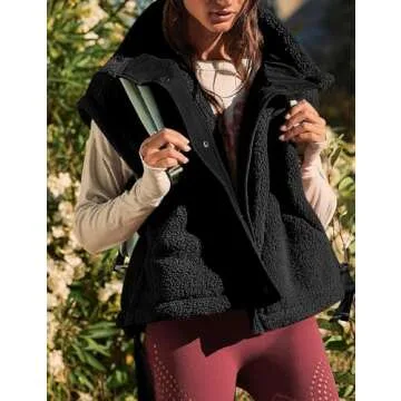 BQDCQB Womens Fleece Vest Oversized Trendy Casual Sleeveless Warm Fuzzy Button Down Sherpa Vest with Pockets Black S