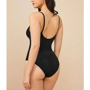 BRABIC Bodysuits for Women Tummy Control Shapewear Seamless Round Neck Butt Lifter Body Shaper Tank Top (Medium, Black)