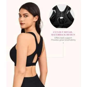BRABIC Women Post-Surgical Sports Support Bra Front Closure with Adjustable Straps Wirefree Racerback Black