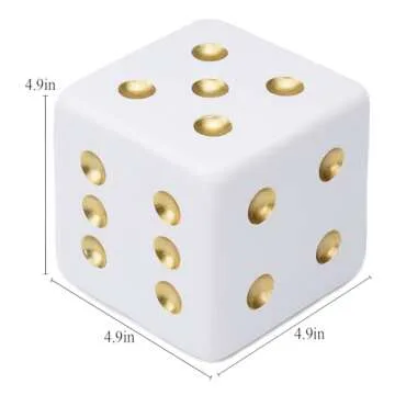 Show more Introducing the stunning **BRABUD Resin Jumbo Dice Decor** — a chic and modern decorative piece that elevates any space with its sleek design. Made from high-quality durable resin, this innovative product boasts strong plasticity, ensuring it remains a centerpiece in your living room, bedroom, or office. Measuring 4.9 inches on each side and weighing approximately 20.5 ounces, it strikes the perfect balance between size and presence, making it an eye-catching accent in various settings. Its elegant white and gold finish is not only timeless but also adds a touch of luxury to any decor style.